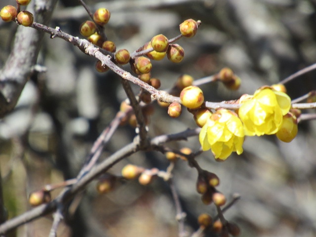 -No9-ロウバイの花。まだほとんどつぼみ。-